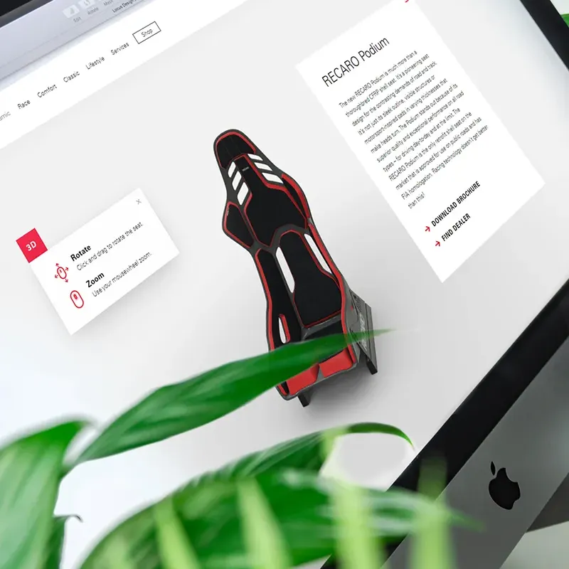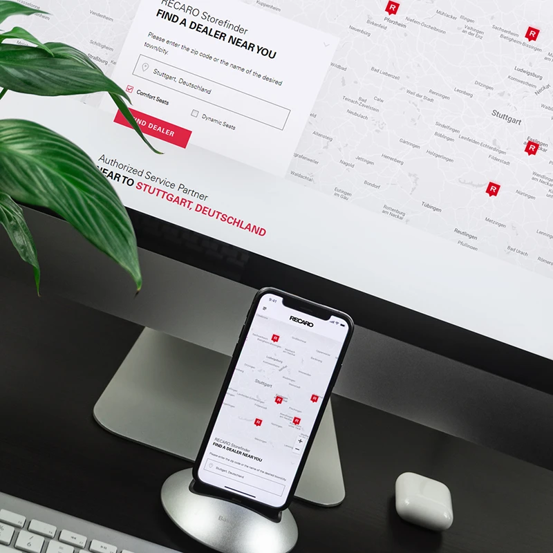 Die neue Website bietet nicht nur eine beeindruckende Produktdarstellung, sondern auch einen innovativen Storefinder, der es den Nutzern ermöglicht, schnell und einfach den nächsten RECARO Automotive Seating-Händler zu finden. Darüber hinaus haben wir besonderen Wert auf die Responsiveness der Website gelegt, um sicherzustellen, dass sie auf allen Geräten einwandfrei funktioniert.